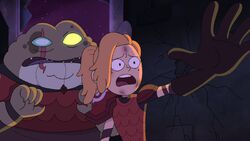 In the Toad Tower, Captain Grime is seen in front of a cell room and shows Sasha, currently in a battered cell, a lost shoe belonging to Anne that was found far from the castle in the south forest. This leads him to believe that not only was she lying to him, but that there is more of her kind still out there somewhere in Amphibia.